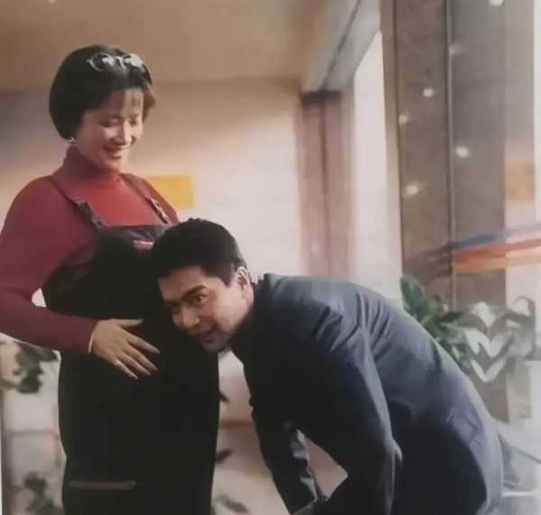 哪怕是何晴怀孕期间拍下的这张许亚军贴着她的肚子,听孩子声音的照片,都一度被视为是孕期夫妻的经典造型。
