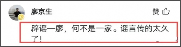 消息流传甚广,以至于最后正主本人--廖京生,亲自下场,来回复网友的热议,力证自己与何晴不是夫妻。