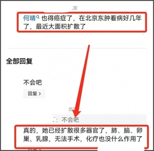 甚至在朱媛媛离世那段时间,就有网友在某平台评论区留言说,何晴的生命也进入了倒计时,她的癌细胞已经全面扩散,早已不是语言出现障碍的问题了。