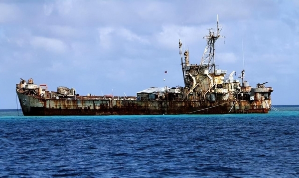 图为菲律宾非法"坐滩"军舰