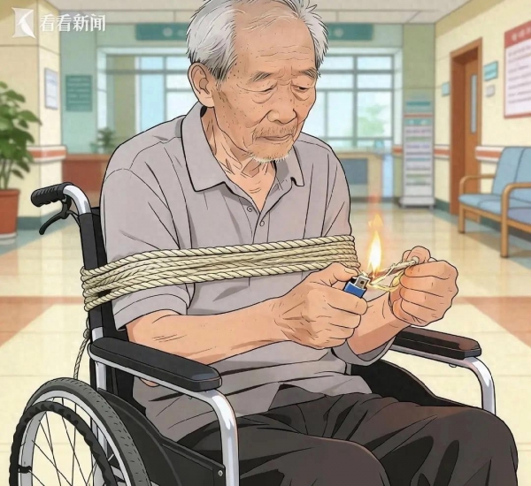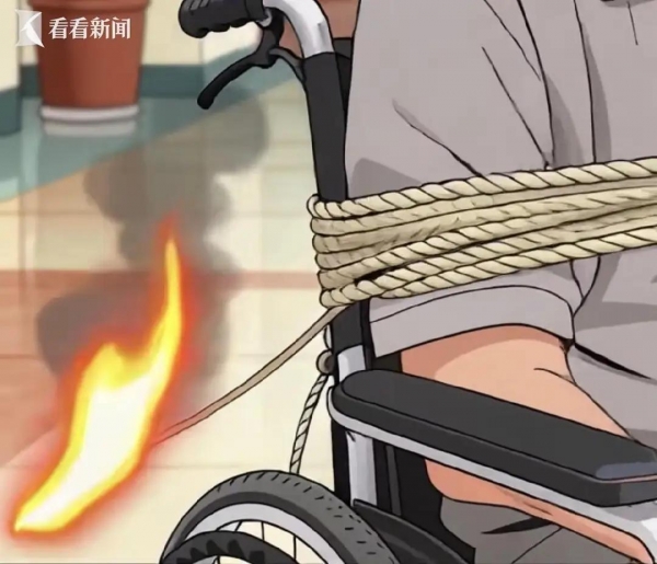 事情发生在2025年2月12日的凌晨,那时的敬老院本该是一片寂静,老刘却在房间里闹腾起来,非要起床不可。护理员孙某忙得团团转,根本无暇时刻盯着他,凌晨3点实在没法子,只能给老刘穿好衣服推到大厅。怕他乱动摔着,孙某找了根尼龙绳,从老刘腋下穿过绑在轮椅后面。这一绑看似为了安全,实则把老刘困在了死局里。这根绳子老人自己根本解不开,孙某转身忙别的去了,短短几分钟,老刘竟自己操纵轮椅进了电梯,一路溜到了一楼大厅。谁能想到,他口袋里竟然揣着打火机。凌晨3点25分,他掏出打火机点燃了腰腹部的那根尼龙绳。绳子瞬间烧断,着火的部分垂下来直接点着了轮椅的右侧轮胎。