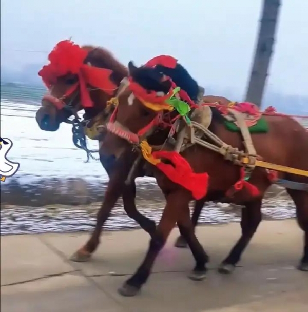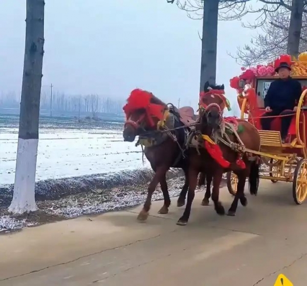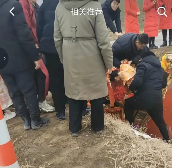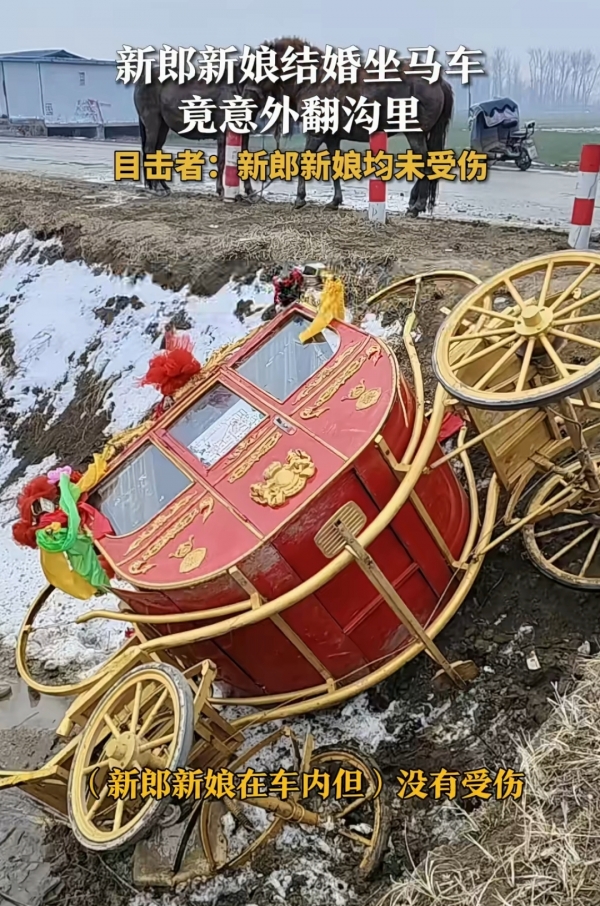 一名女子在视频中解释道,新郎和新娘乘马车结婚是我们当地的习俗,新娘需要坐着马车去婆家,万幸的是人没有事。