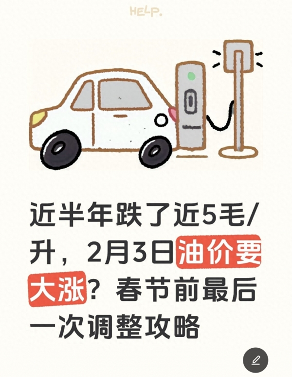- 油箱现在还是满的,或者能撑到春节后:可以不用急,下一次调价是2月24日,说不定到时候油价会回落