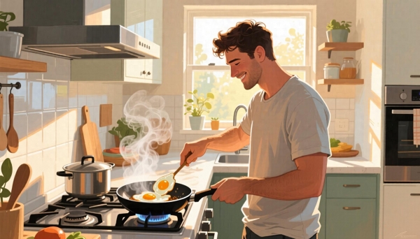 清晨六点半,厨房里传来锅铲轻碰的声音。林然揉着惺忪睡眼走进去,看见丈夫正笨拙地煎蛋--油溅得到处都是,火开得太大,蛋边已经焦黑。她本想皱眉,却在看到他额头上细密汗珠的一瞬,把话咽了回去。她默默接过锅铲,轻声说:"下次我教你。"他不好意思地笑了,那笑容,和十年前他们在大学食堂第一次约会时一模一样。