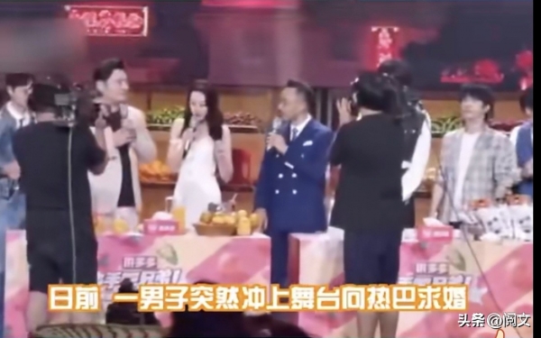 2020年湖南卫视助农直播中,该男子再次冲上台求婚迪丽热巴,被主持人汪涵拦截。