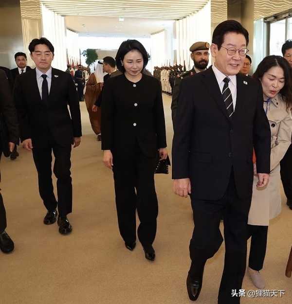 目前李在明和夫人到了阿联酋首都阿布扎比,这是他们此次出访的第一站,李在明到哪儿都带着夫人,给了金惠景展示风采的机会。这次金惠景刚到阿联酋穿的是浅蓝色格子裙装,看着挺舒服的,之后要会谈的时候她换了正式的黑色套装。