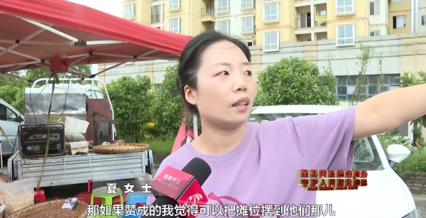 那如果他们赞成的话,我觉得可以把摊位摆到他们那儿啊,二栋那边也有广场,物业门口也可以摆,摆过去啊,全部都摆到同意的人那边去,让他们试一下。