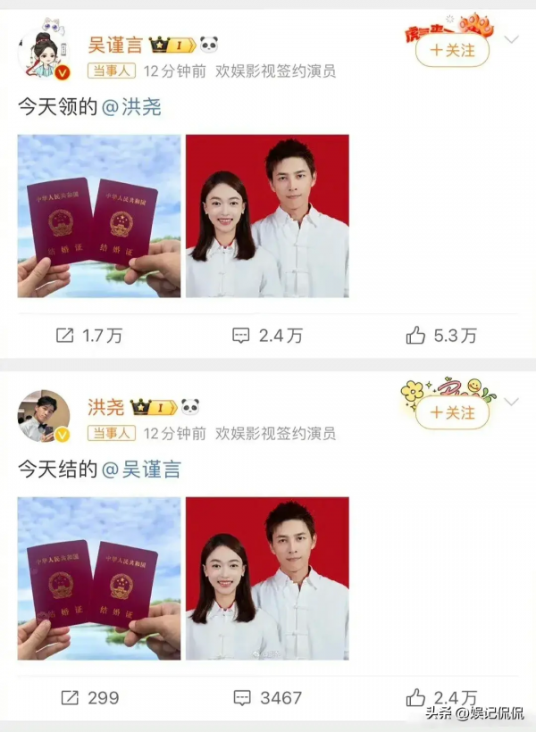 9月13日,当一大批网友还在关注三只羊香港月饼的时候,女明星吴谨言,突然官宣了领证结婚的炸裂消息。