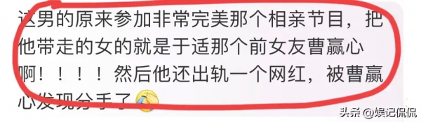 有眼尖的网友扒出,洪尧曾参加过相亲节目,当时牵手的女嘉宾,正是这两天闹得沸沸扬扬的于适的前女友曹赢心。