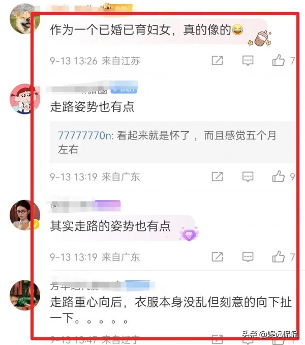 大家当时都是以为她只是吃胖了,现在回头来看,走路重心向后,衣服没乱也无意识的向下拉扯,肢体语言不会骗人,一切都是有迹可循的。