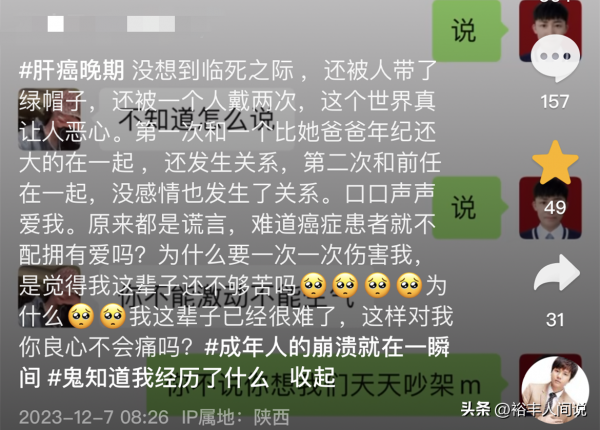 人生如果经历这些,就已经足够惨烈了,但对于大飞来说这些远远不够。他曾在去年年底透露,自己交往的女友背着他两次出轨,美其名曰是不想让其受伤,但做的每一件事情都是在伤他的心。