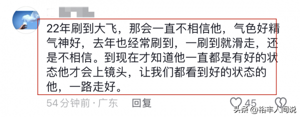 有人认为大飞是在骗取流量,就像网友总结的那样:22年刷到大飞,那会一直不相信他,气色好精气神好,去年也经常刷到他,一刷到就划走,还是不相信,到现在才知道他一直都是有好的状态才允许自己上镜头……