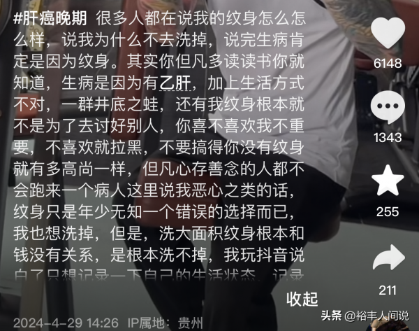 面对这样的抨击,大飞曾辟谣自己患上肝癌主要是因为乙肝,再加上生活方式不对导致的,而他之所以刺青,并不是想讨好别人,而是喜欢。