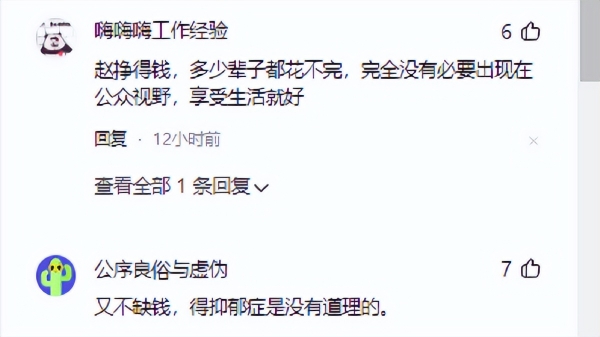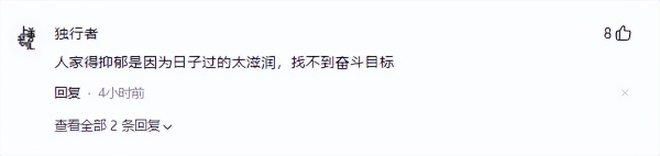甚至有网友嘲讽,她就是日子过的太好了,以至于人生没有了目标才抑郁。