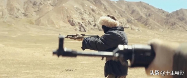 一辆盗猎车载着"皮子"正在狼狈逃窜,后边两辆巡山队的车紧追不舍。巡山队长多杰(胡歌饰)举起枪,毫不犹豫的对准盗猎车的轮胎,一时间枪声四起。