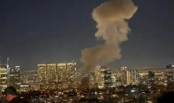 ,德黑兰市中心发生爆炸后,浓烟冲天。