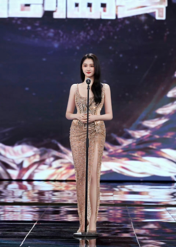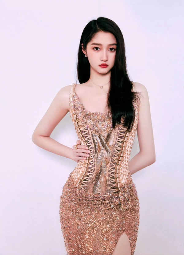 整体造型既兼具礼服的华丽感,又借由高开叉与修身剪裁,将关晓彤高挑纤瘦、充满活力的好身材完美释放,每一处细节都在诠释着优雅与性感的平衡,大长腿更是成为造型中最夺目的亮点。