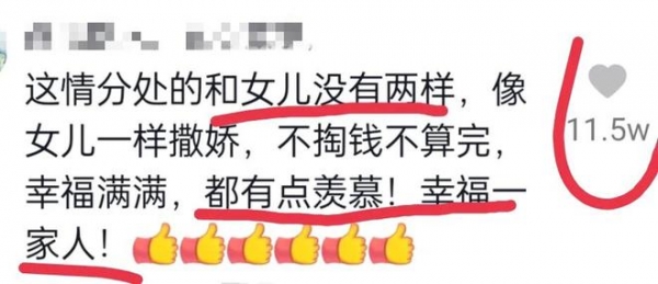 网友:这关系让人羡慕。公公和儿媳相处得和女儿没两样,儿媳像女儿一样撒娇,不掏钱不算完,幸福满满,有点羡慕!幸福一家人!