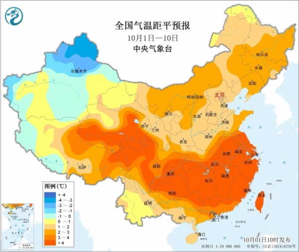 未来10天,全国大部地区平均气温偏高1~2℃,其中江淮、江南、华南北部以及重庆、青海东部和南部、四川西北部等地偏高3~5℃;仅新疆北部平均气温偏低1~3℃。