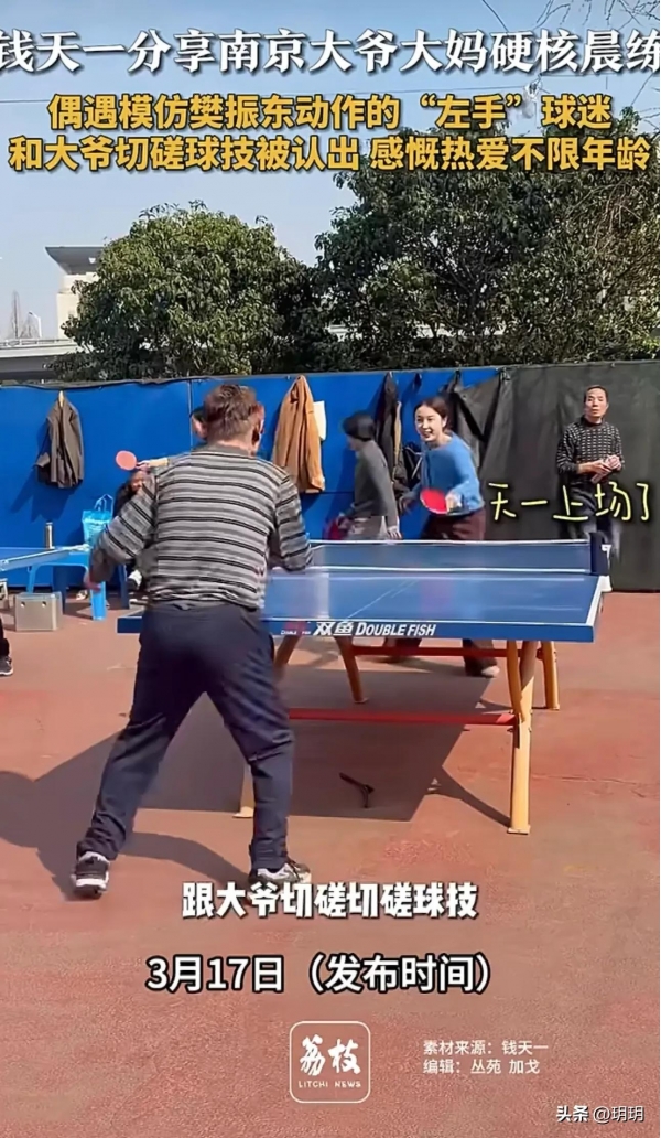 近日,乒乓球名将钱天一在社交平台分享了一段在南京武定门公园晨练的趣闻,幽默配文引发热议。视频中,她不仅遭遇"民间高手",更被公园里一群硬核老人的健身日常"上了一课"。