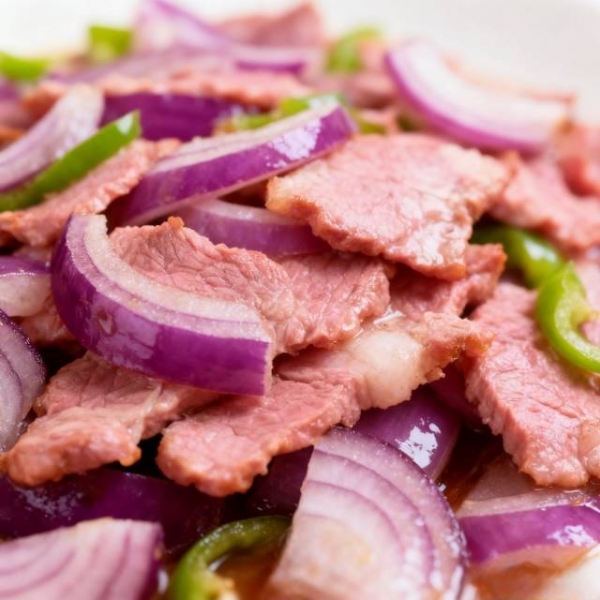 第二道:洋葱炒瘦肉片(杀菌散寒+补蛋白,增强抵抗力)
