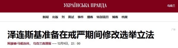 12月9日,乌克兰真理报报道称,泽连斯基在12月9日的在线简报会上对记者表示,如果国际伙伴能够确保总统选举期间的安全,他已准备好举行总统选举。