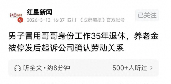 朋友们,你敢信吗?有人冒用亲哥哥身份,在单位踏踏实实干了35年,退休刚领一年养老金就被停发,一怒之下把公司告上法庭,最后结果出乎很多人意料。