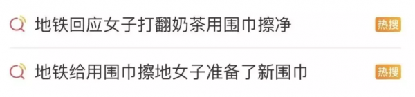 此前据媒体报道,12月3日,江苏苏州一女子坐地铁时不小心将奶茶洒在车厢里,她立刻蹲下清理,在自备纸巾用完后又拿自己的围巾把污渍彻底擦干净。
