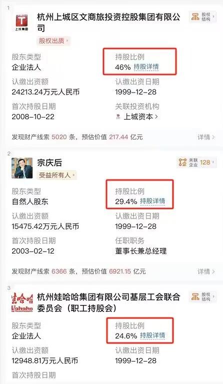 但娃哈哈集团的股权结构复杂,她父亲老宗总持有29.4%的股权,为第二大股东,只有跟持有24.6%股权的第三大股东集团工会(也就是集团中层)联手,才能和杭州上城区文商旅投资控股集团有限公司的第一大股东抗衡。