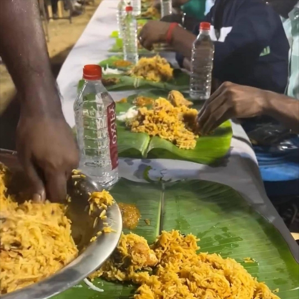 如果说前面的问题还能归结为能力不足,那么备受争议的欢迎晚宴真的是说不过去了,晚宴现场既没有碗,也没有碟,只有米饭、咖喱,还有一些根本看不出是什么的黄色、黑色糊状物,就那么直接堆放在一张张绿色的垫子上。