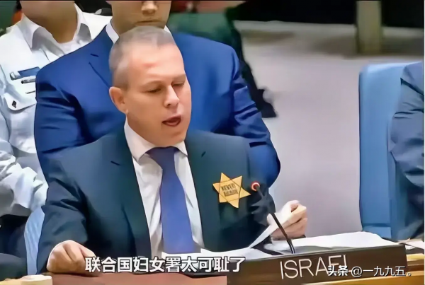 当地时间去年10月30日以色列刚刚对加沙实施大规模军事行动的时候,埃尔丹在联合国例行会议上当众戴上了一颗黄色六芒星,上面清楚的刻有"再也不会"字样,这种黄色六芒星是二战期间德国纳粹强迫犹太人佩戴的一种标识,这个举动引起了现场多个国家的不满!