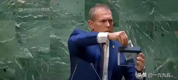 在当地时间5月10日,联合国大会第十届紧急特别会议通过决议,认定巴勒斯坦应该被接纳为正式成员国时,以色列代表埃尔丹站在联合国大厅的讲台上拿出一个"中国制造"的便携式碎纸机,将《联合国宪章》的封面放在里面进行粉碎!