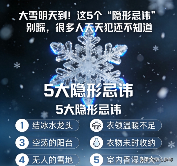 明天就是大雪节气,意味着冬天是真的冷透了。天寒地冻的日子里,大家都想着保暖养生,但有些习惯看着平常,其实是节气里的"隐形忌讳",不知不觉就伤了身体。今天用大白话跟大家唠唠,这5个坑千万别踩,照着避就能安稳过冬。