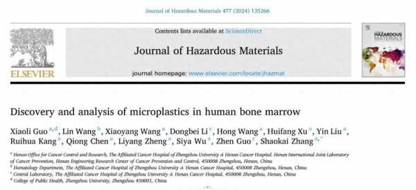 成果以"Discovery and Analysis of Microplastics in Human Bone Marrow(人体骨髓中微塑料的发现与分析)"为题发表于国际顶级期刊Journal of Hazardous Materials《有害材料杂志》(中科院一区top,影响因子IF=12.2)。