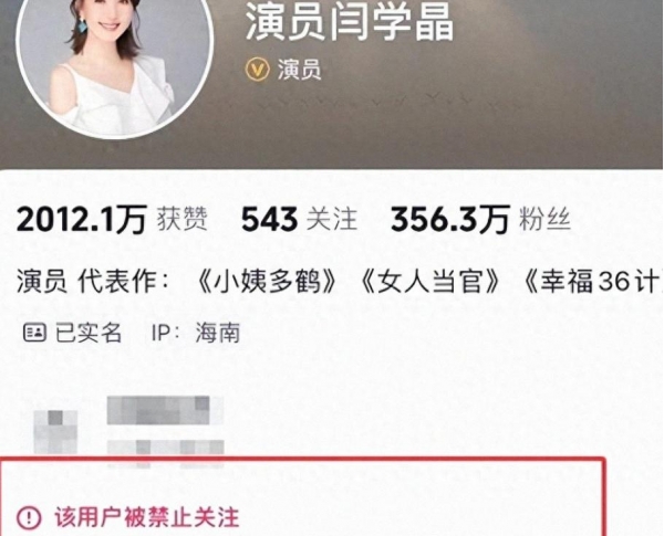 不仅如此,闫学晶全平台的账号也都被封禁,不管是大号小号现在都是禁止关注的状态。
