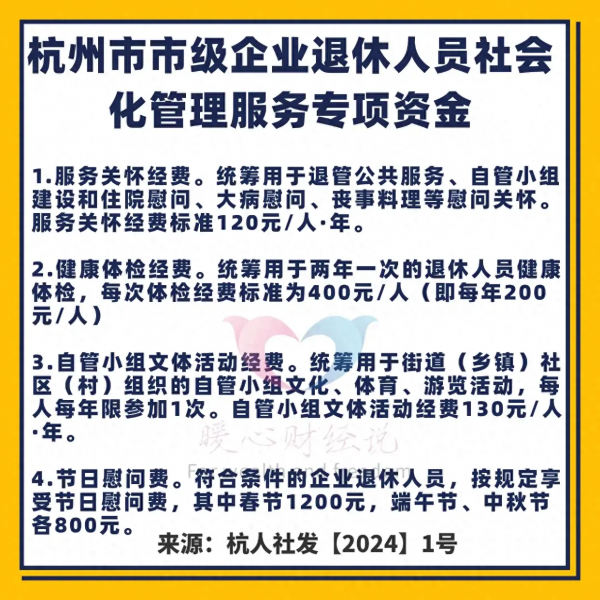中秋收到过节费的退休人员,一般指的是杭州市市级企业退休人员。这是地方财政为退休老人们发放的节日慰问费,属于各地自行制定的老政策了。