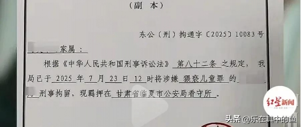 随着调查深入,七月二十三日,小艾因涉嫌猥亵儿童罪被依法刑事拘留。