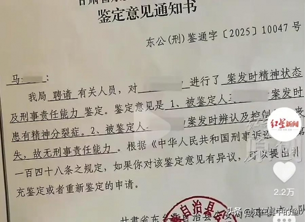 鉴定显示,小艾在作案时患有精神分裂症,被认定为"无刑事责任能力",这意味着,从刑事角度看,她无法为自己的行为负责。
