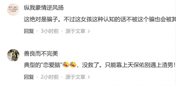 网友们看到这个,也都是非常诧异的,这条件也很不错啊,脑子咋不好使,这典型的是遇到杀猪盘了,还不抓紧报警,及时止损。