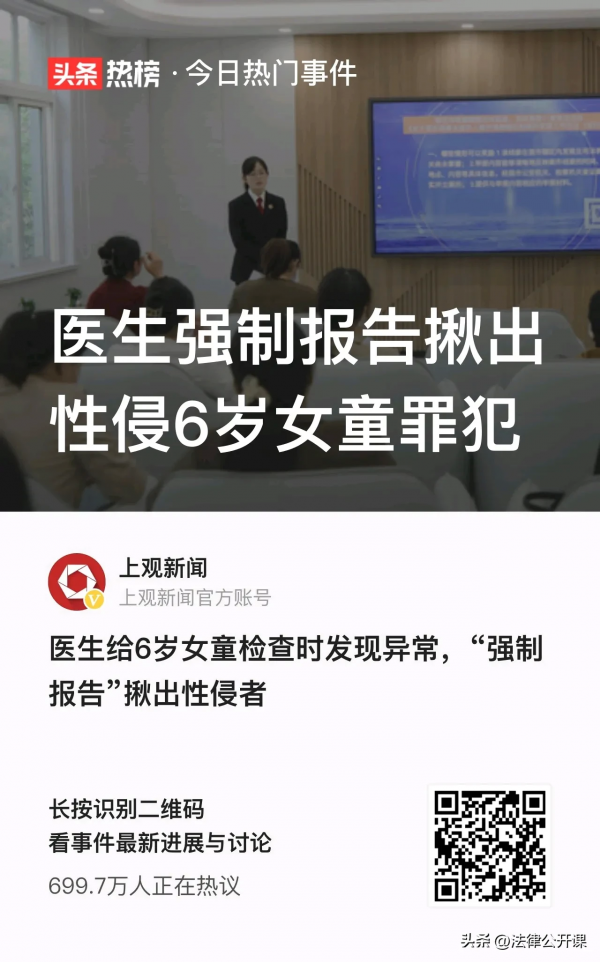 具体到本案,徐医生在接诊过程中,发现6岁女孩可能被性侵害的,就必须上报,这是法定的义务,没有可选择的余地。如若不尽报告义务,那么徐医生将受到处分。