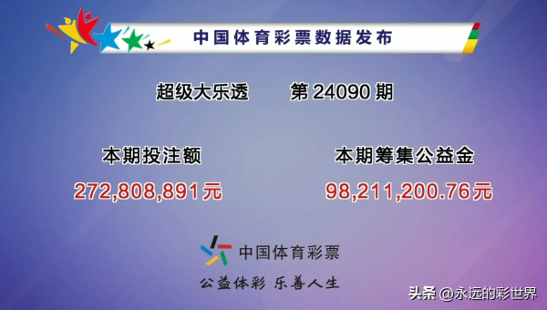 言归正传,大乐透第24090期全国销售总额2.72亿元,为国家募集公益金9821万元。