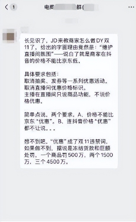 此外,有商家向记者证实,京东还成立了巡查团队,每日对商家在多个电商平台的商品定价进行巡查监测。一旦巡查团队发现商家在其他电商平台的最终商品售价(可能是叠加了平台补贴价后)低于京东平台售价,该商家就将面临京东平台百万、甚至千万级别罚款。例如,一个商品罚500万,两个1500万,三个4500万。