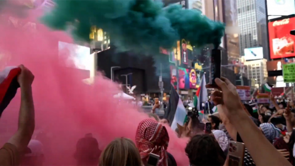 据美国广播公司报道,当地时间8月1日,美国时代广场附近举行有关巴以冲突的抗议示威活动。以色列支持者与巴勒斯坦支持者发生冲突,6人因扰乱治安而被纽约警方带走。