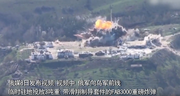俄媒日前发布消息,俄军向乌军驻地投下3吨重磅炸弹,视频中,炸弹精准击中建筑冲击波迸出巨大浓烟腾起,建筑物被夷平。