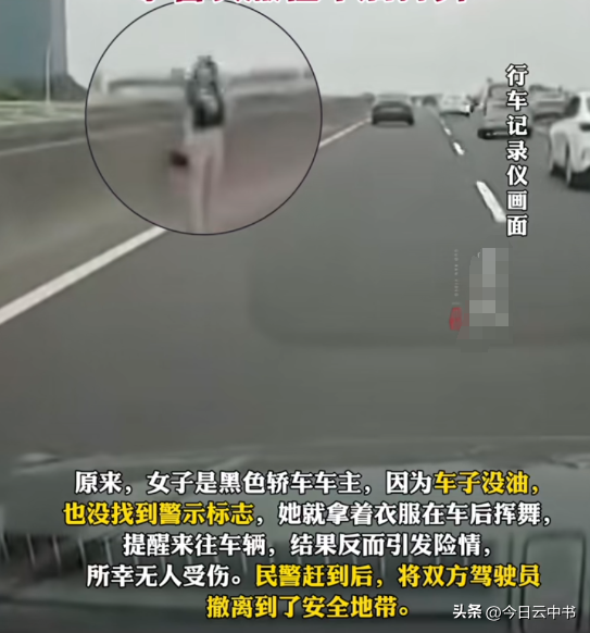 在南京机场高速上,一位女车主因车辆没油停在行车道上,无奈之下只能用衣服充当警示标志。非但没有缓解危机,反而导致了险情发生,所幸无人受伤。
