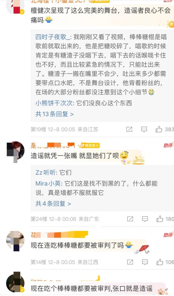檀健次舞台上吐痰上了热搜,他的粉丝也在第一时间出来澄清,他们认为这都是舞台效果,舞台表演的时候檀健次吃了一颗棒棒糖,后来开唱的时候糖有点卡着喉咙了,于是吐出了带有口水的糖,所以不是痰。