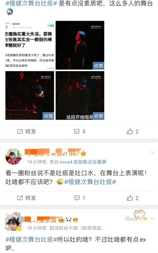 2月7日,檀健次在深圳开演唱,舞台上檀健次疑似吐口水的一幕被抓拍到了,瞬间上了热搜,檀健次这一行为也被审判了,有网友认为这种行为没有素质。