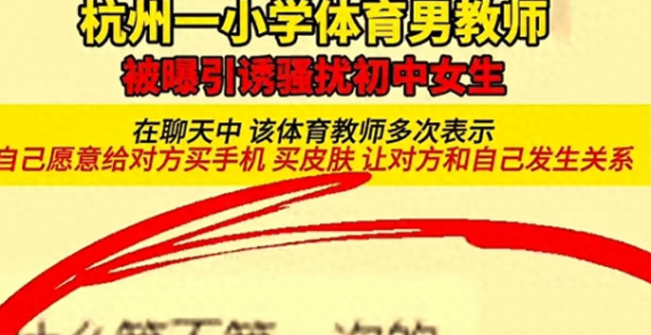 小学体育老师用手机、皮肤引诱骚扰初中女生,聊天记录曝光,网友们炸了!