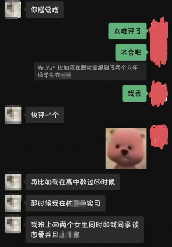 其中在这名女生拒绝了这名老师后,老师转头就约了另一个女生一同去看私人电影,这名老师还不止对一名学生有过超出师生间的正常距离!且多名同学告诉记者:老师经常半夜约她们出去,或者去他家。
