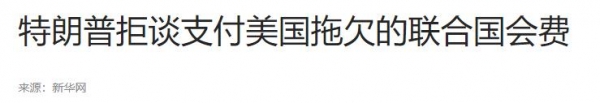 特朗普在这里为美国彻底不缴纳欠款埋下伏笔,联合国一旦相信他说的话,来求他"办事",他必然会要求联合国以免除美国的欠款为条件进行要挟。